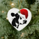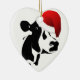 Christmas ornament shown in a heart shape with a cute black and white cow print. Customize this item or buy as is.