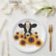 This paper plate is designed with a cow and sunflowers. Great for parties, picnics or any get together.
