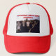 A red and white hat featuring a photo of a group of Hereford cattle, with the caption, "Greetings From Cow Country."