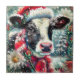 Cow Dreaming of Warmer Times Teal Red Floral Tile