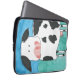 The sleeve is made of nice feeling material and seems very durable. I'm not sure how easy it'll be to clean, but the construction seems sound and the fabric is quick thick. I also like the double zipper. The printing is lovely and appears durable. The white on black contrast is nice, and the design very elegant.