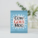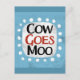"Cow Goes Moo" is a fun text design with a white accent shape surrounded by white whimsical textured dots.