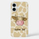 Cow's head illustration. Seamless cow pattern background. Custom text.