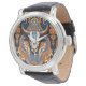 Cow Head Tooled Leather Damask design decorative western style watch in tan, brown and denim blue colours. A rustic old wild west inspired artwork perfect for anyone who loves the country western ranch lifestyle. Perfect for any cowboy!
