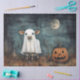 Cow in Ghost Costume with Pumpkin and Full Moon Tissue Paper