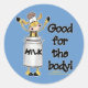 This Funny cow is wearing a milk can held up with suspenders and knows what's good for her body!. Great for milk lovers and dairy farmers! Original design by Christie Black of Creations from the Heart.