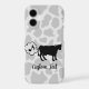Farting cow silhouette. Seamless cow pattern background. Vector elements with fully customizable colour fills. Custom text.