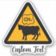 Warning triangle with farting cow silhouette. Custom text.