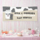 If your baby shower theme is Milk and Cookies then this banner is perfect for your party! This design features a bottle of milk and a cute cow on the front with a stack of cookies. In the background is a cow pattern. The colours are black, white and tan. It's a great way to greet you guests and is apart of the Tan Cow Milk and Cookies Baby Shower set.