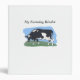 Illustration of a black and white dairy cow grazing in a field. Image available on various gifts and products. Personalized binders.
