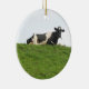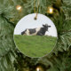 Cow Ornament. A Frisian Holstein cow relaxing and looking with a curious and funny face at You! This cow ornament is fully customizable! Add & personalize with Your texts and images! A great cow gift for the cow items collector and farm animal lover!