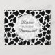 Will you be my Bridesmaid card. Black and white seamless cow background pattern.