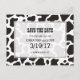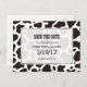 Black and white seamless cow background pattern Save the Date postcard with transparency and custom text fields.