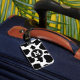 Cow spots pattern luggage tag | Funny farm animal print with monogram letter. Cute Birthday gift idea for cow lovers, cowboys and cowgirls. Personalizable cowhide fur with your name, monogram or quote. Blochy black and white cow hide skin design. Western travel theme decoration.