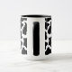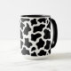 This two-tone coffee mug is shown in a cute black and white cow print.