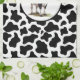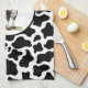 This kitchen towel is shown with a cute black and white cow print.