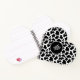 This cute heart shape notebook is shown with a black and white cow print with sample initials.