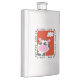 The product is a good size and came exactly as it was pictured. The lid is not attached to the flask, which could be dangerous on drunken nights... The print came out surprisingly well and looks very sharp. Would definitely recommend.