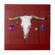 Cow Skull with Christmas Ornaments on Red Barn Tile