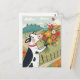 A funny folk art style illustration of a cow with a bouquet of flowers, the perfect postcard for birthday and other congratulations to show your love to a cow lover.