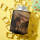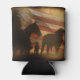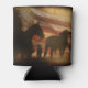 Country western cowboy with cattle and big American flag. A rustic looking patriotic can cooler.