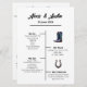 Save paper with this all-inclusive program that lists all of the day's events on one side, and the wedding party and thanks on the other. The design includes optional cowboy boots and a horseshoe graphics.