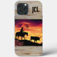 Personalize this Unique "One of a Kind" Cowboy and Longhorn Steer iPhone Case! It Features a Cowboy Riding a Horse Herding a Longhorn Steer During a Beautiful Orange Sunset...Surrounded by Wood Borders!
