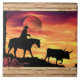 Brighten Your Home with this Unique "One of a Kind" Cowboy and Longhorn Steer Ceramic Tile! It Features a Cowboy Riding a Horse Herding a Longhorn Steer During a Beautiful Orange Sunset...with Wood Borders!