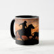A cowboy ropes a steer in an amazing sunset. Cool country western coffee mug.