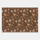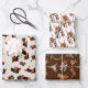Cowboy baby shower or birthday party wrapping papper sheets. Adorable cow pattern overalls, saddle, lasso, cowboy hat, skull and cowboy boot in neutral colours of khaki brown, rusts and cream colours.