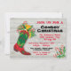 Yeehaw! Celebrate the holidays with the Cowboy Christmas Party invitation. Features a red and green cowboy boot with candy canes, toys horse, trumpet, horseshoe and pine bows. Perfect for that country feel!