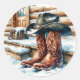 Cowboy Boots on the Front Porch on a Winter Day Classic Round Sticker