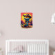This artwork is special because it takes a beloved pet and transforms him into an iconic pop culture character. The combination of a tough-looking lizard with a cute cowboy hat creates a unique and humourous contrast that's instantly appealing. Its vibrant pop-art style—with bold outlines and a neon sunset—makes it a standout piece, perfect for anyone who loves funny memes, pets, or the whimsical side of fantasy.