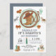 A "saddle up" cute and whimsical wild west cowboy first birthday invitation in terracotta browns and blues for a boy, with western gear cowboy gear and ranch animals. Saddle, steer, horses, cactus, saddle and lasso. Everything as cowboy needs. It's his first rodeo! You may customize this for any age.