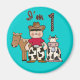 Your lil' wrangler will love this Cowboy with horse and cow that reads "I'm 1" in rope text on this western themed first birthday design. Customize the background colour!