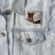Cowboy hat on row of cowboy boots outside a log 2 inch square button