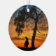 A pretty country western cowboy ornament. Sunset with an oak tree and a cowboy chasing the last steer before nightfall.