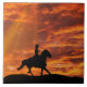 A cowboy riding his horse at sunset, this is a beautiful country western home décor art tile.