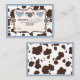 Cow print with jeans and chaps diapers on clothesline and a 3D-look twine bow diaper raffle ticket design for a baby shower.
