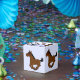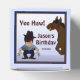 A graphic illustration of a funny kid cowboy and his horse on a Birthday party favour box.