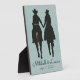 Perfect plaque to use at the wedding reception or as a wedding gift. Great keepsake that will create fond memories for years to come. Two horses and riders on a teal burlap background. The background colour of teal can be changed to whatever colour works for you! Personalized with names and wedding date.