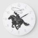 Cowboy on bucking horse running with lasso large clock
