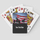 Customize these playing cards and make a personal gift! American cowboy, country western image of a cowboy roping and rounding up a herd of wild horses with a parotic flag in the background. A great rodeo, western style card.