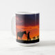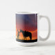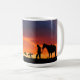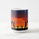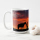 Cowboy en prière avec son cheval et une tasse à café étonnante couché de soleil