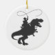 Cowboy riding dinosaur in the prehistoric era ceramic ornament