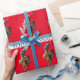 A pattern of a cowboy on his bucking bronco on red makes a fun wrapping paper for the rodeo enthusiast.