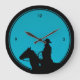 Cowboy Silhouette on Turquoise Large Clock