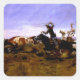“Cowboys Roping a Steer” by Charles M Russell Square Sticker