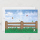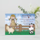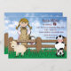 A delightful, bright-eyed cowgirl with braids is on her horse. Behind the fence a sheep and pig are part of the farm petting zoo animals. A great invitation for any farm related party.