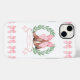 Personalized iphone case with cowgirl boots and a big pink bow framed with a laurel wreath and name banner. Add your name, monogram or initial. Girly design with borders of pink bows to match the cowgirl logo. Designed for the iPhone 14 Plus but will fit many other models. If you choose a different model check the design still looks great in the preview and tweak if necessary (click "edit using design tool").